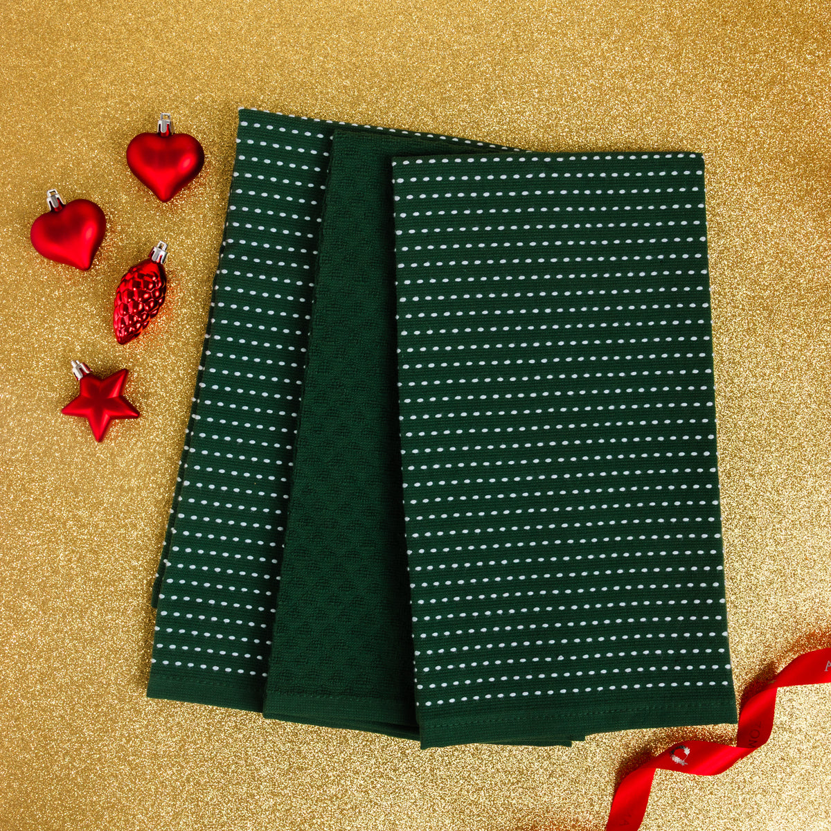 Σετ 3 τμχ Christmas Towels Kitchen Dot Green