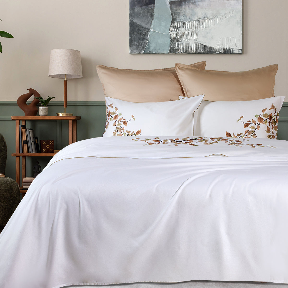 Ανανεώστε το υπνοδωμάτιό σας με το υπέροχο σετ σεντονιών "Forest Leaves", κατασκευασμένο από βαμβάκι υψηλής ποιότητας, με 210 TC/inch² κλωστές. Προσφέρει μοναδική αίσθηση απαλότητας και ανθεκτικότητας! Το σχέδιο προσφέρει μία αριστοκρατική και ήρεμη ατμόσφαιρα στο υπνοδωμάτιο και συνδυάζει την αισθητική με την άνεση για έναν υπέροχο ύπνο.