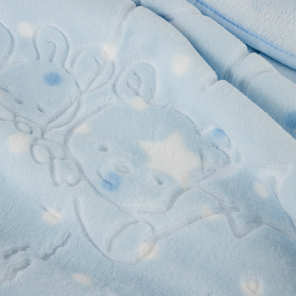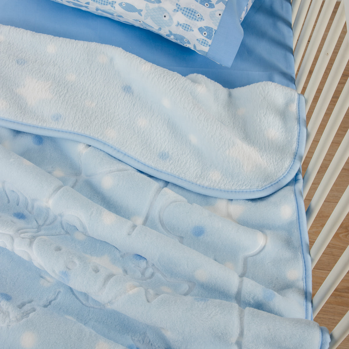 Βρεφική κουβέρτα κούνιας σε απαλό σιέλ χρώμα, με κομψά ανάγλυφα σχέδια που χαρίζουν ιδιαίτερη υφή και αισθητική. Κατασκευασμένη από μαλακό και ζεστό ύφασμα, αγκαλιάζει απαλά το μωρό και προσφέρει αίσθηση θαλπωρής και άνεσης κατά τους χειμερινούς μήνες. Ιδανική για καθημερινή χρήση στην κούνια, αλλά και ως μια όμορφη και πρακτική επιλογή δώρου για νεογέννητο. Συνδυάζει ποιότητα, απαλότητα και διαχρονικό design για το παιδικό δωμάτιο.