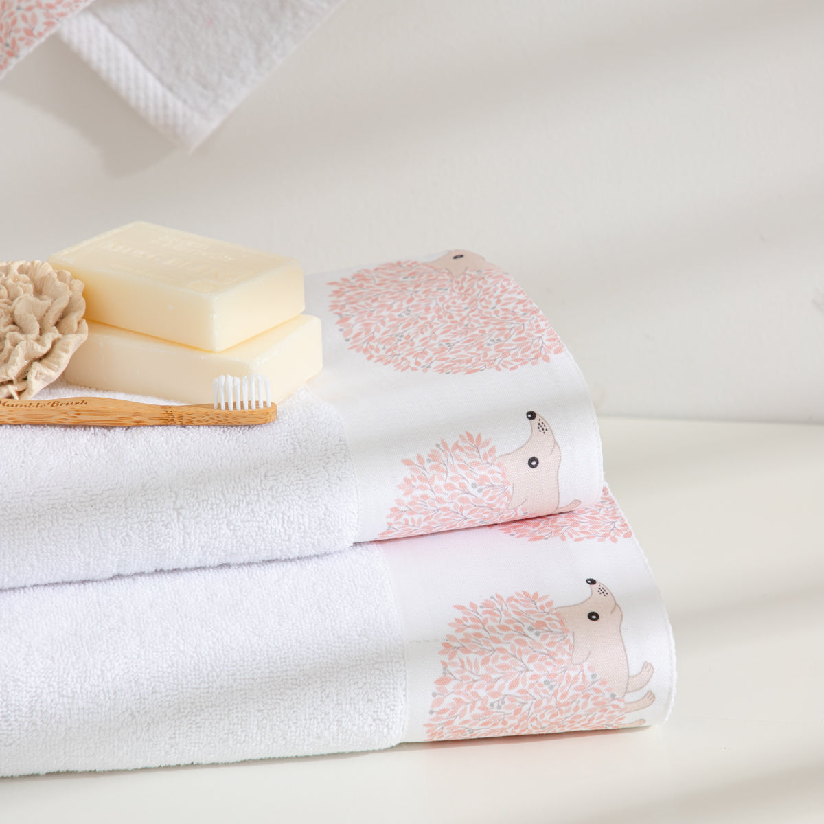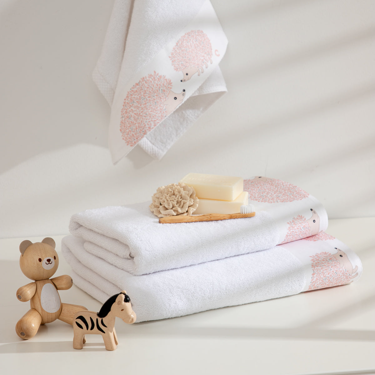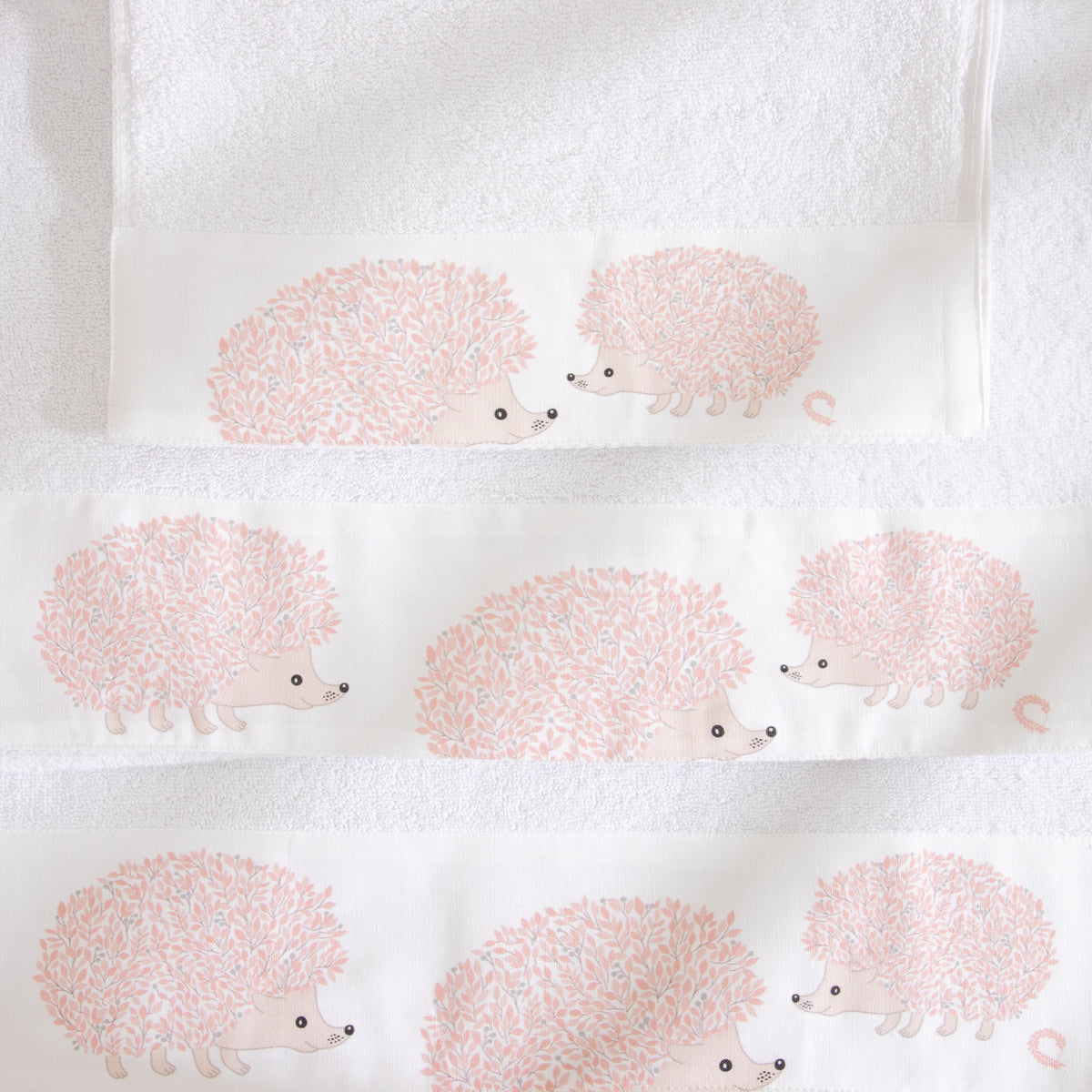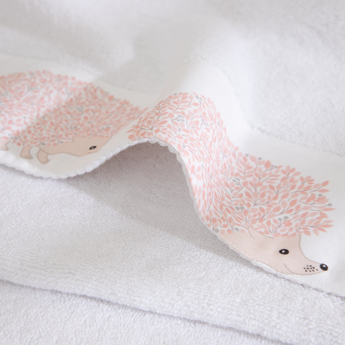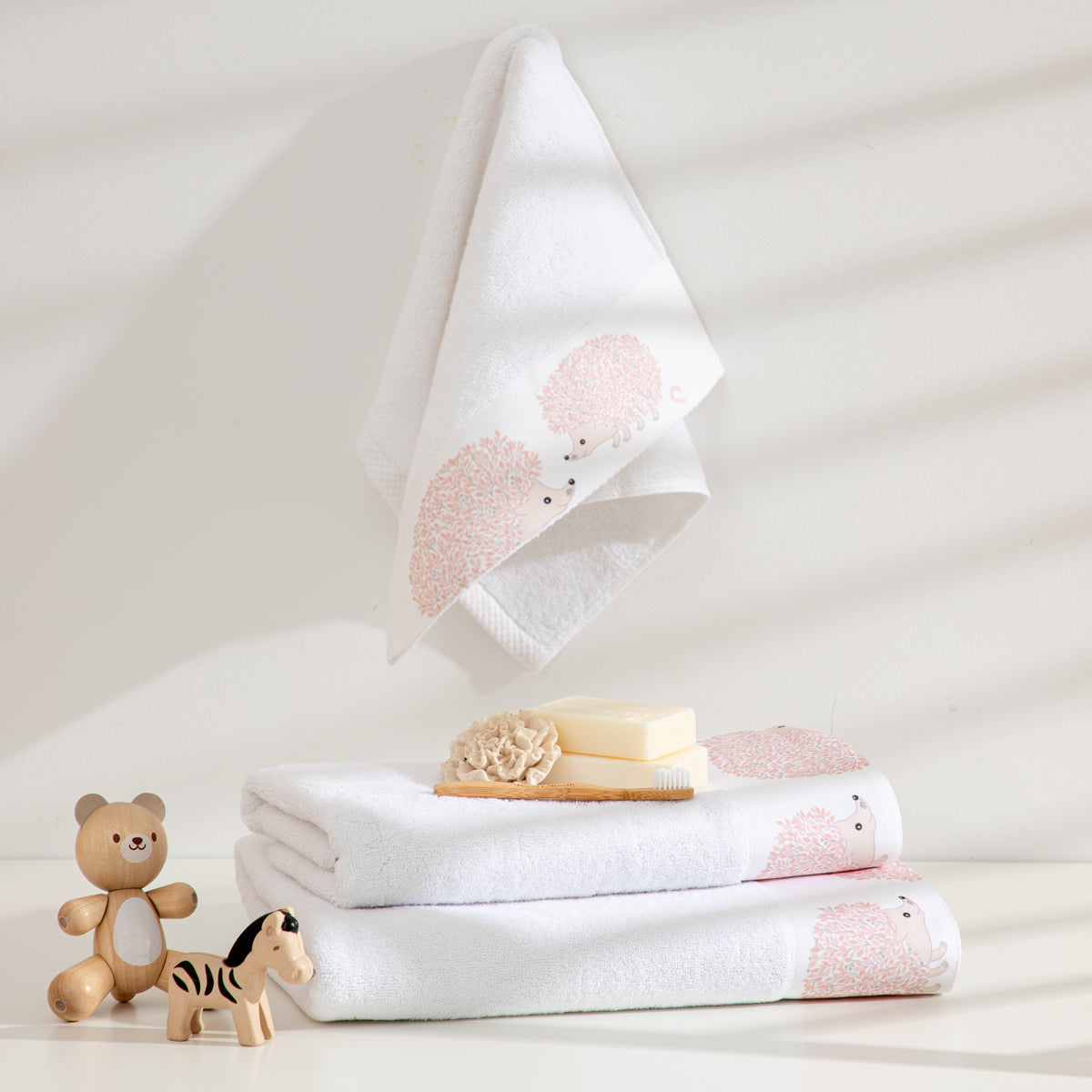 Σετ πετσέτες Σκαντζόχοιρος σε λευκό χρώμα, κατασκευασμένες από 100% βαμβάκι, με βάρος 550gr. Προσφέρουν ανθεκτικότητα & απορροφητικότητα, αποτελώντας ιδανική επιλογή για πλήρη κάλυψη των καθημερινών των παιδιών σας.
