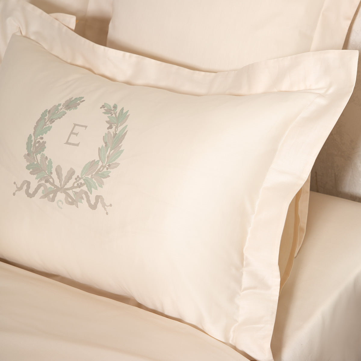 Paar Amina-Kissenbezüge mit Monogramm, ecru, 50 x 75 cm.