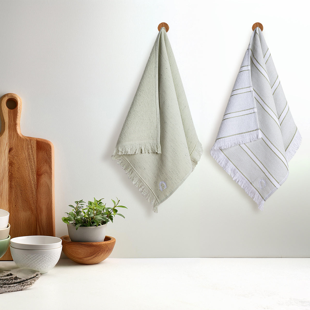 The kitchen where you will cook the Christmas table will become more festive with kitchen towels.