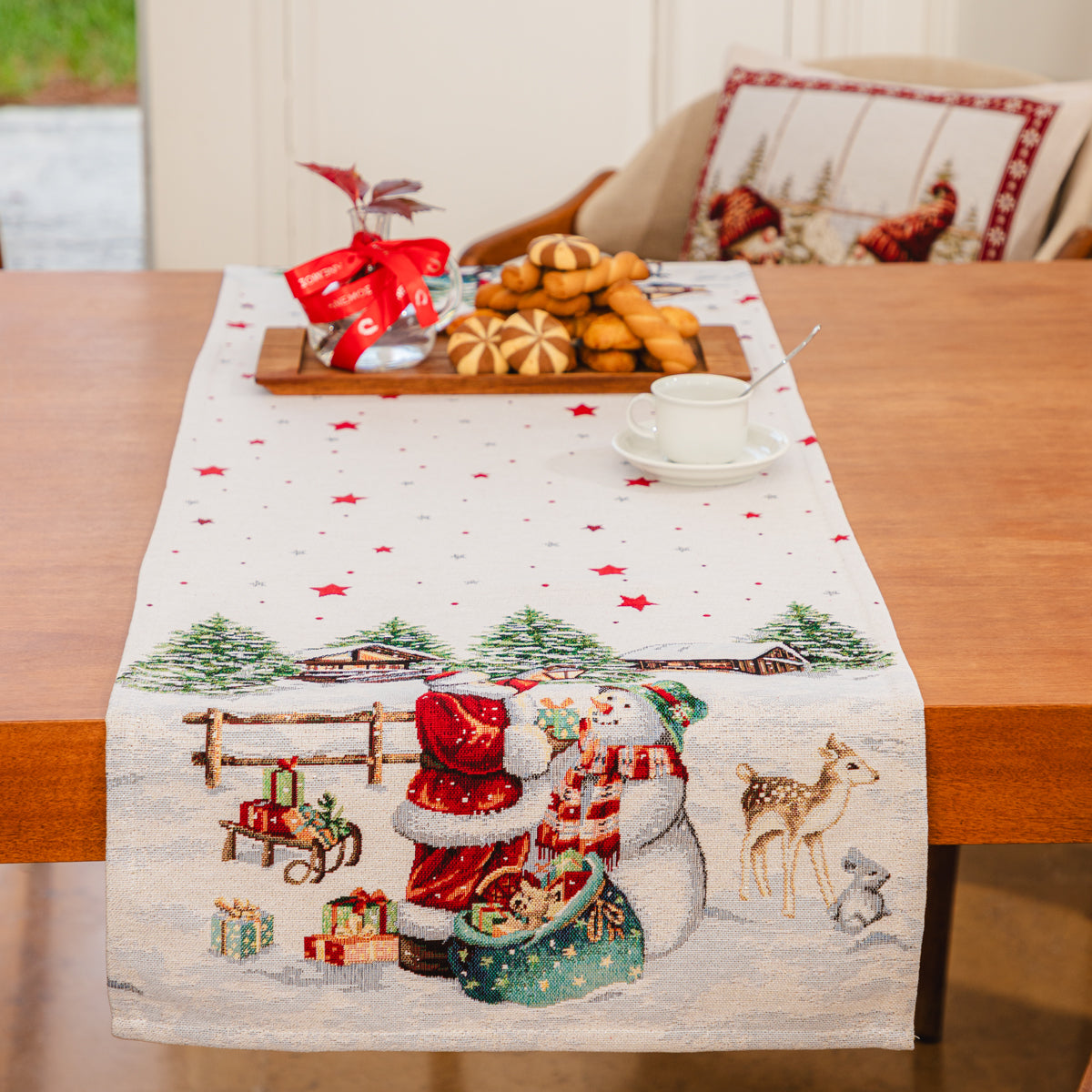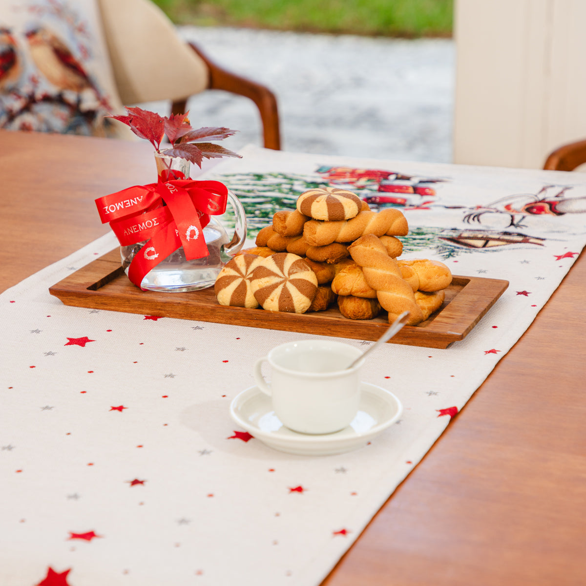La table de fête où vous servirez fièrement vos délicieux plats sera complétée par les nappes de fête brodées ou imprimées, les dormeuses et les soupelats en tissus 100% coton.